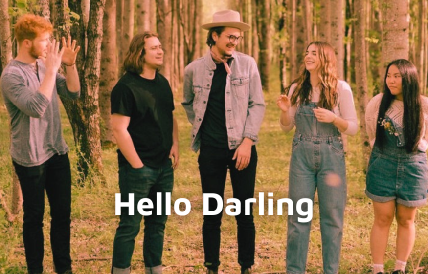 On October 1, 2021, we introduced Hello Darling to you as an indie-folk duo, formed by Grace Russell and Patrick Armould in Nashville. A year passed, and the duo turned into a 5-piece band!